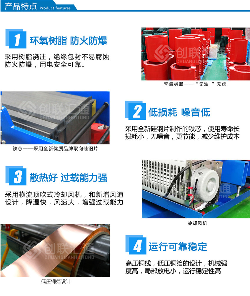 2、動穩定程度高:產品繞組有較高的機械強度,具有較強的抗突發能力,以滿足極惡劣的負載環境。在設計、制造過程中較好地消除了變壓器漏磁引起的或非正常運輸可能造成的動不穩定源。
